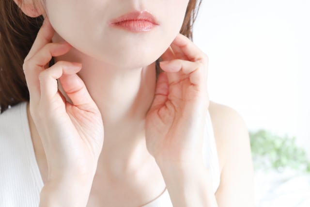 - 顎から耳の下に向けて、軽く指をすべらせる