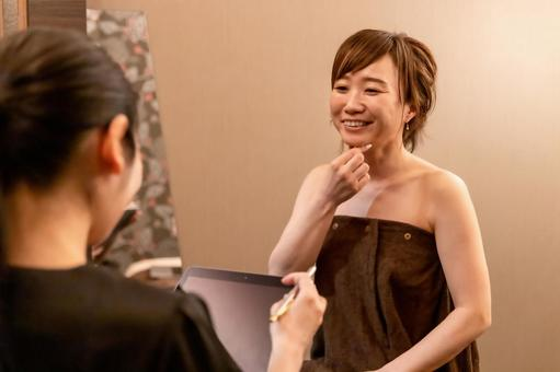 - 耳下から顎先、首筋へとやさしく指を滑らせる