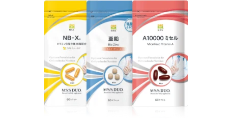 商品 価格 亜鉛 ¥4,104 NB-X(ビタミンB群) ¥3,564 A10000 ミセル ¥7,776 ※価格は全て税込です