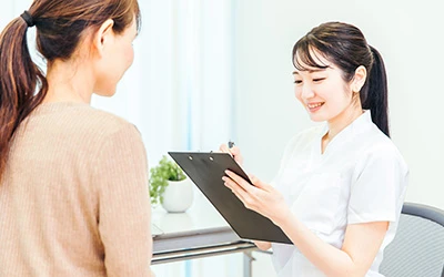カウンセラーがお悩みやご希望をお聞きし、その後、医師の診察でお肌の状態を確認します。診察内容をもとに、カウンセラーが丁寧に施術内容をご案内いたしますので、初めての方もご安心ください。