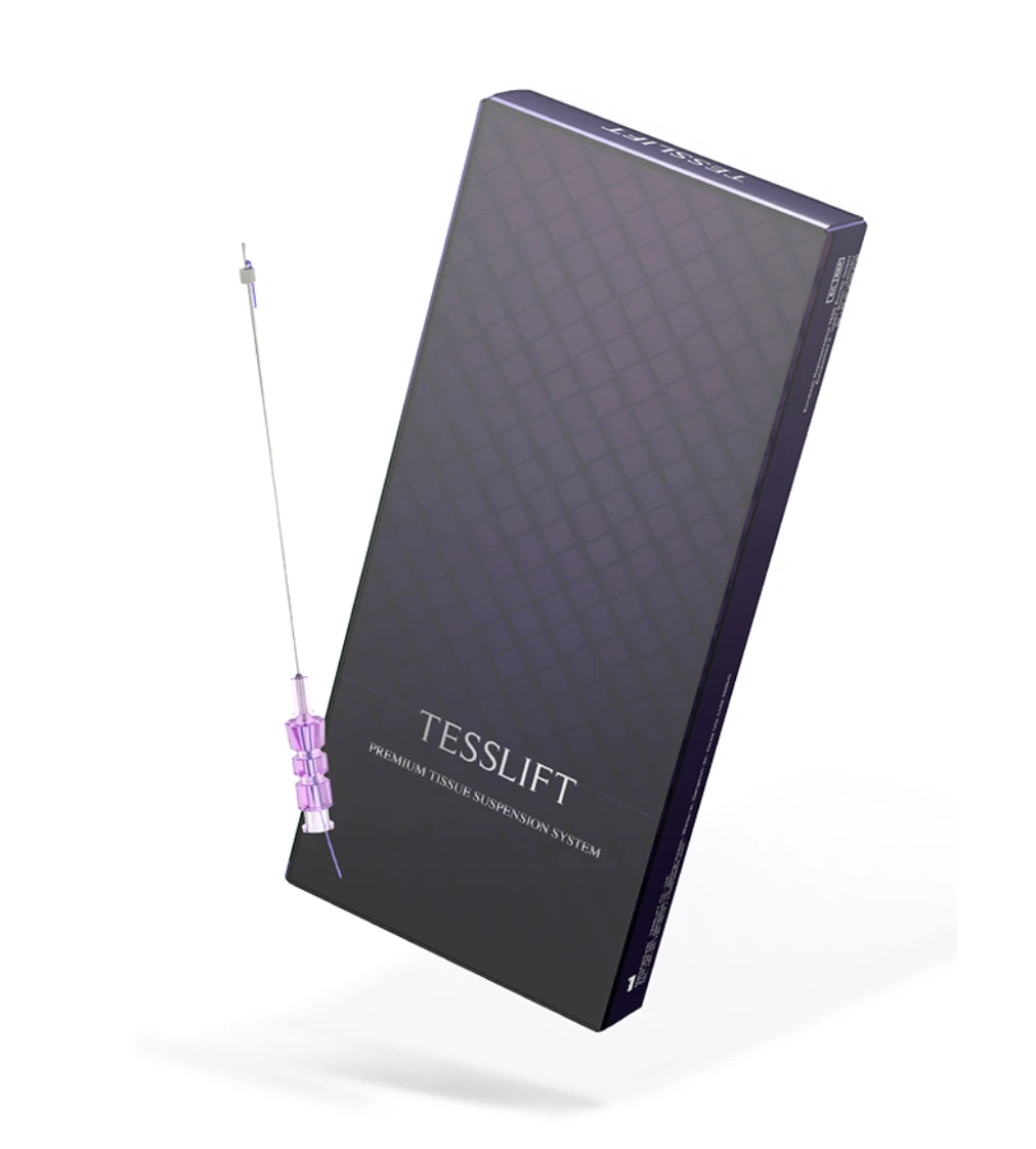 テスリフトは、網目の3Dメッシュで棘が付いた糸の周りを覆っているタイプの糸です。次世代の糸と呼ばれており、比較的短期間で肌に定着しするのが特徴です。