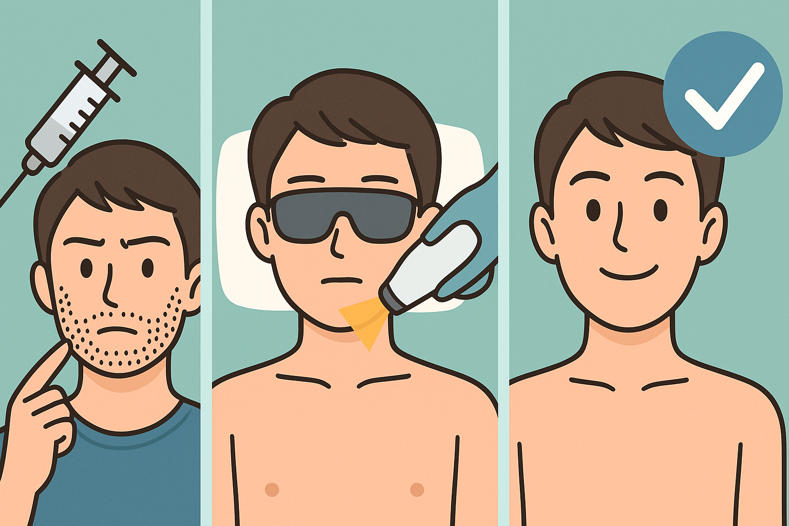 ヒゲ脱毛はしないほうがいいと不安に思う方もいますが、実際にはライフスタイルや目的に合った施術を選べば満足度は高くなります。ヒゲ脱毛の施術方法は以下の3つです。