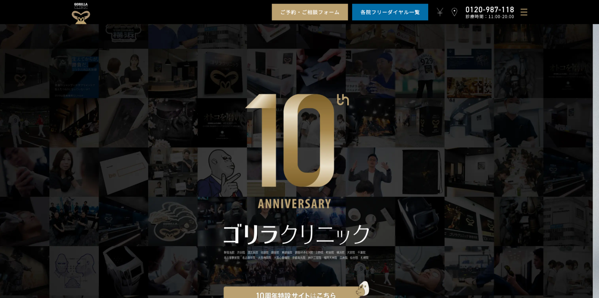 ゴリラクリニックは、男性専用の美容クリニックです。最新の医療設備を導入しており、痛みに配慮するなど患者様の負担にならない治療を心がけています。料金もお手軽で通いやすく、最善の治療ができるクリニックとして高い評価を得ています。