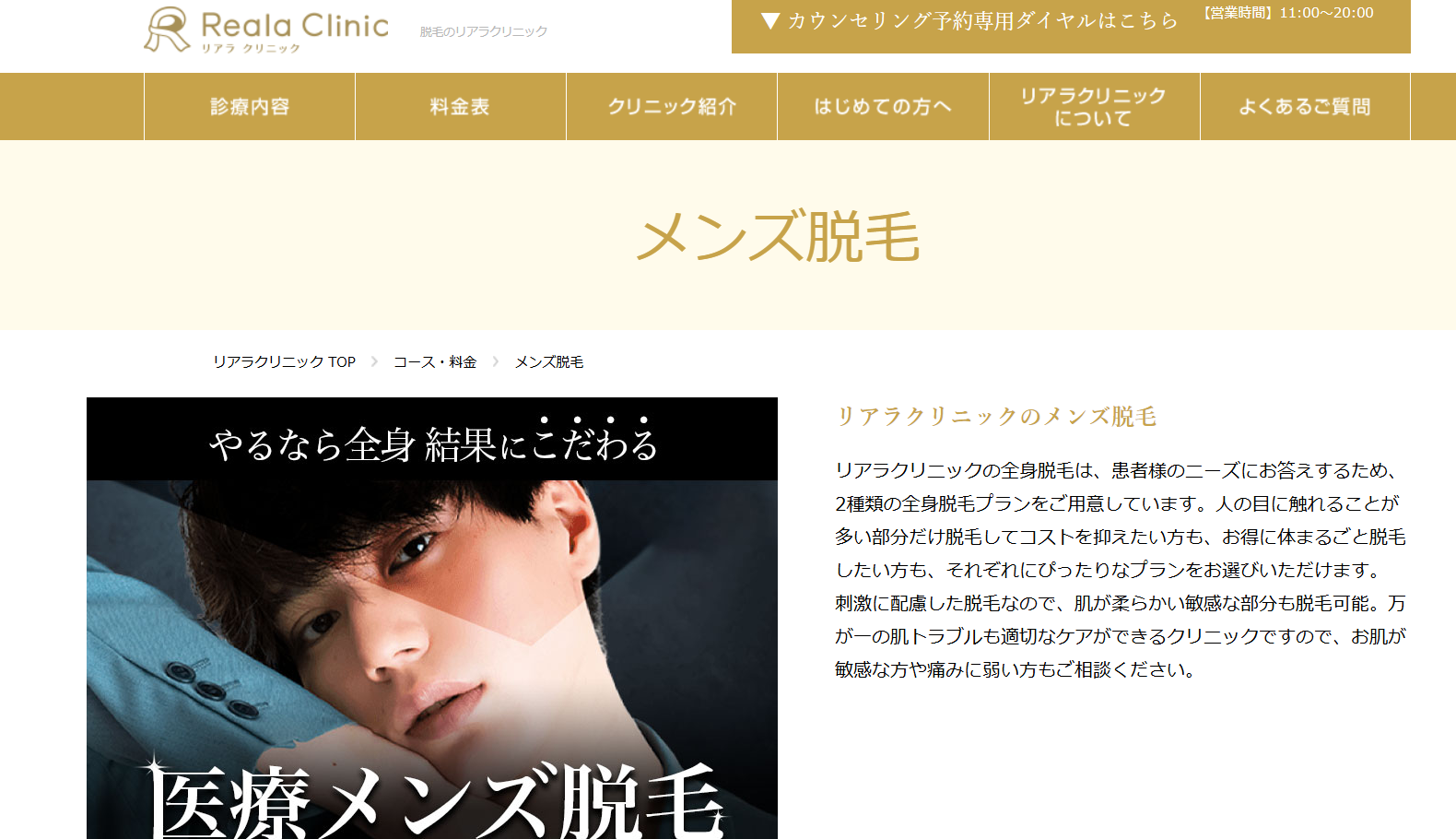 リアラクリニックは、質の高い医療を提供している医療脱毛専用クリニックです。スピーディーに脱毛できる蓄熱脱毛器を採用しているため、肌に負担がかからず脱毛ができます。親切で丁寧な対応が特徴で、肌トラブルにも責任を持って対応してもらえる点は大きな魅力です。