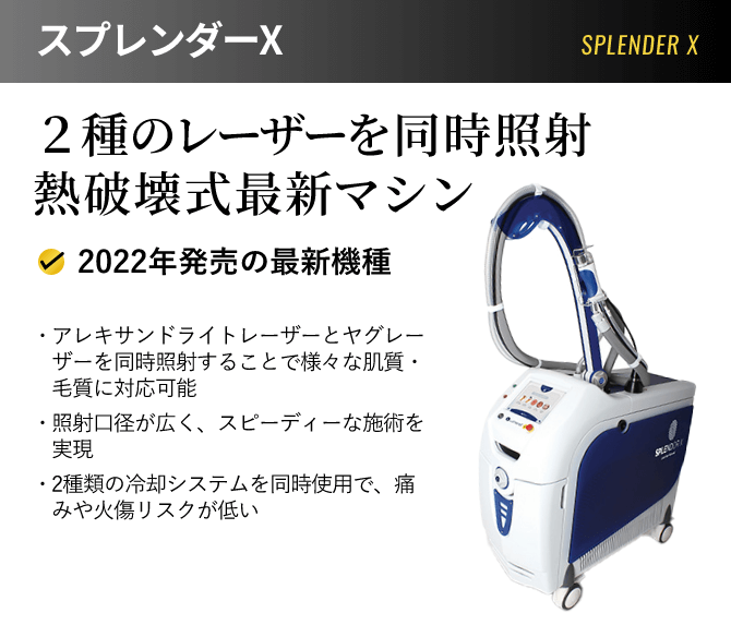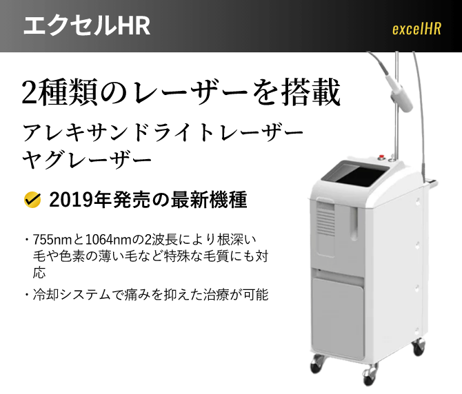 最新式のレーザーを用いているので、ほとんど痛みのない施術が可能です。医療脱毛では、輪ゴムで強く弾かれるような痛みがありましたが、当院のマシンでは「じんわりあたたかく感じる」「少しチクチクする感覚がある」程度です。痛みに弱い方でも全く問題なく施術を受けていただけます。